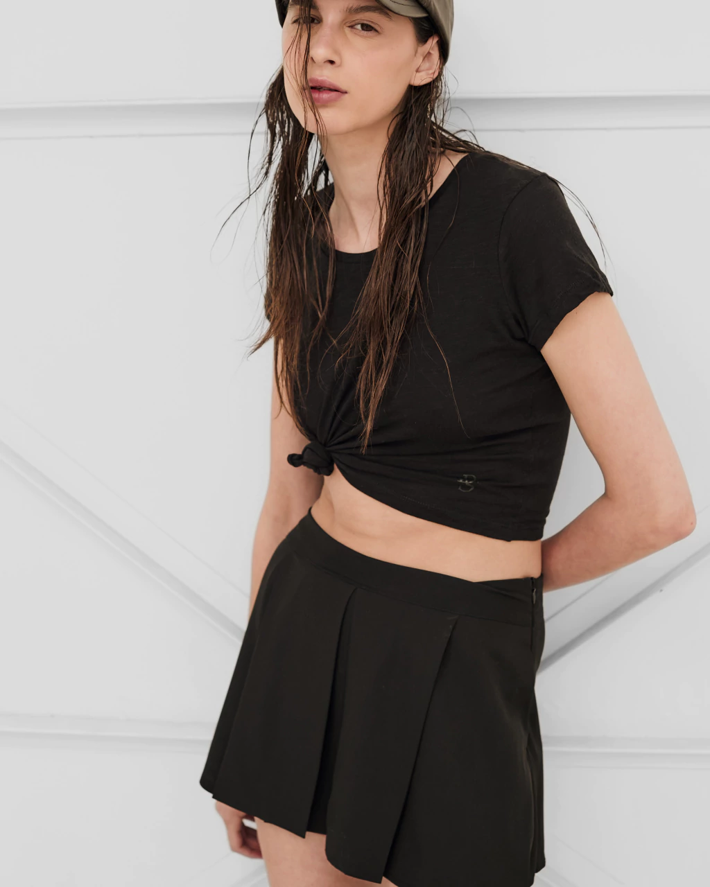 T1 equivale a XS/S y el T2 a M/L, para tomar como referencia, la modelo utiliza talle 1.